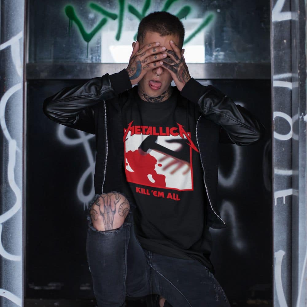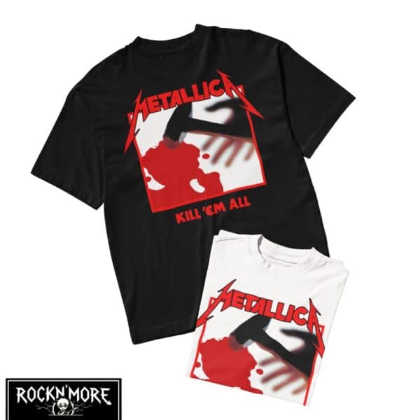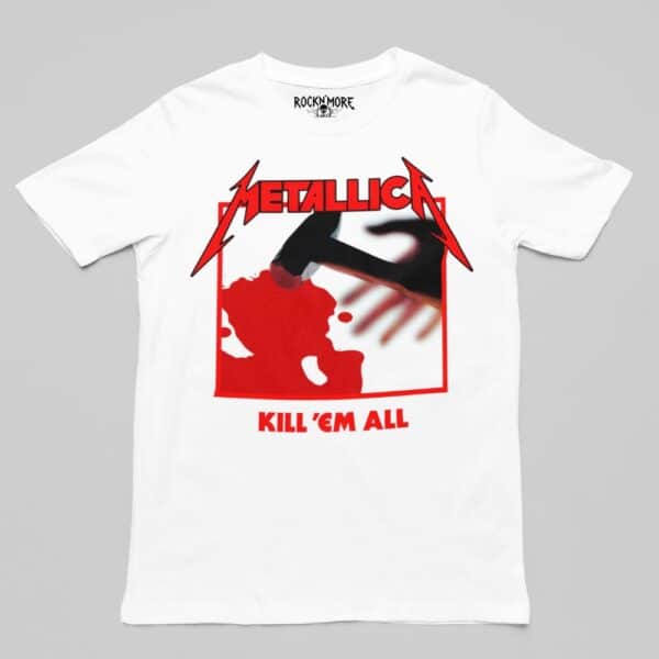La playera de Metallica ‘Kill ‘Em All’ es una celebración auténtica del legado del rock pesado. Su diseño icónico, inspirado en el álbum que marcó generaciones, plasma el espíritu rebelde y poderoso de la banda más influyente del metal. Imagina llevar contigo la energía de su primer álbum.
