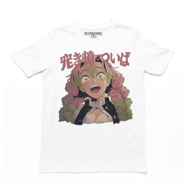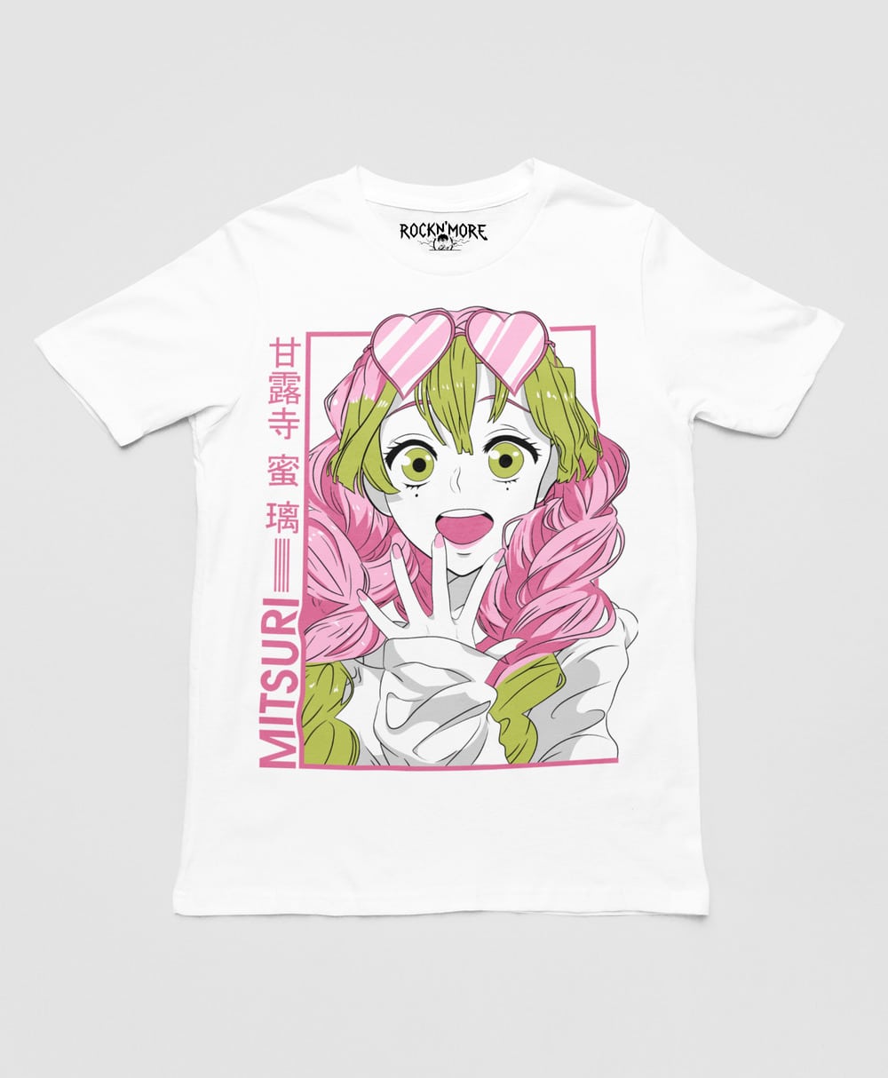 Esta playera captura a Mitsuri Kanroji con su sonrisa encantadora que ilumina cualquier habitación. Perfecta para los fans de Demon Slayer que quieren llevar esa energía positiva a todas partes.