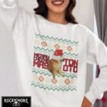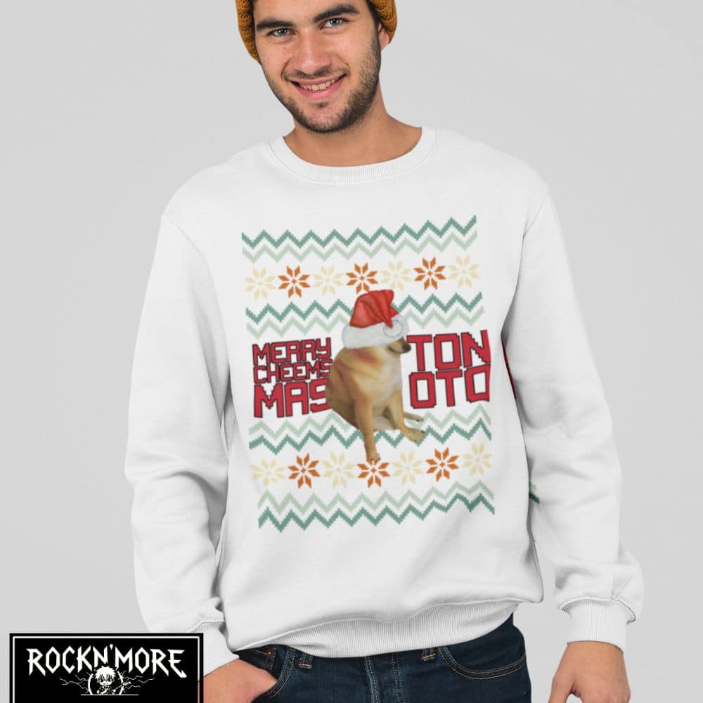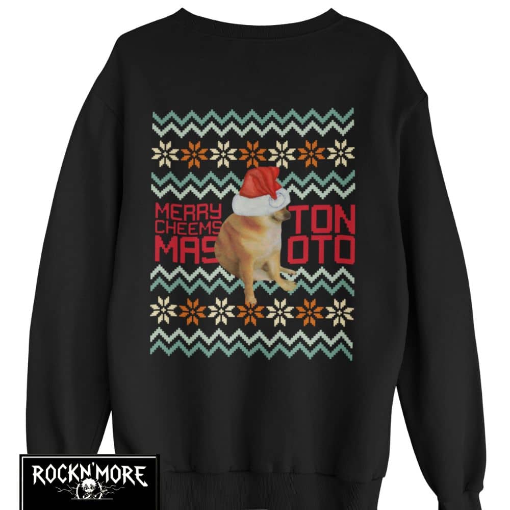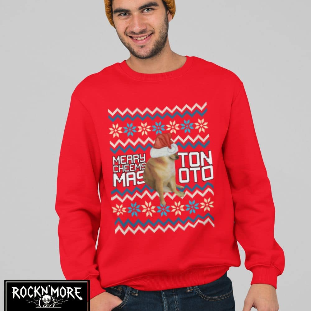 Este sweater es el tope del arte ugly-sweater: un Cheems vestido de Santa listo para dar guerra en cualquier intercambio navideño. Ideal para esos momentos cuando quieres que tu familia y amigos se sientan incómodamente fascinados por tus elecciones de moda. En resumen, es un festivo desastre lleno de amor navideño y pelajes caninos.