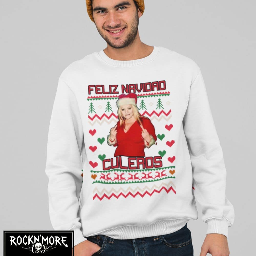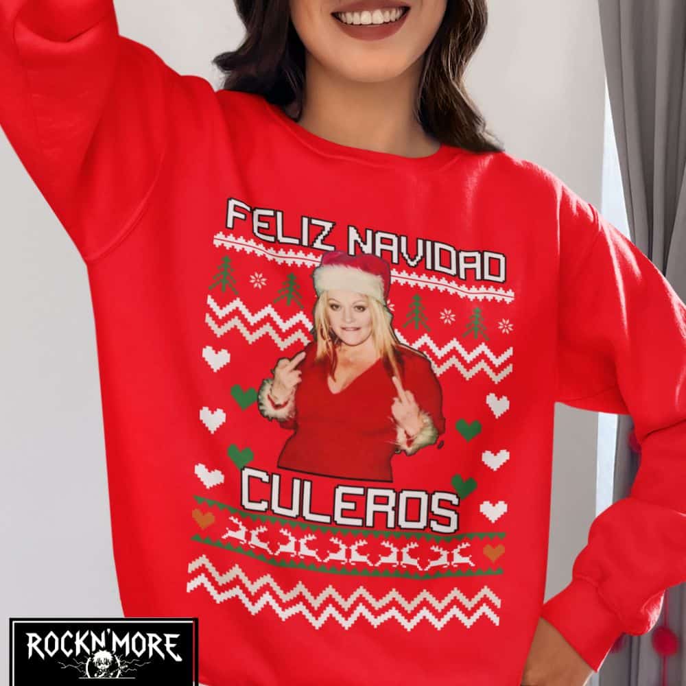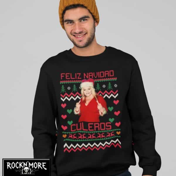 Di adiós a los días de suéter feos sin personalidad y dale la bienvenida a este tesoro de la moda navideña. Presentamos un sweater dedicado a la diva de la banda, Jenni Rivera, ahora listo para llevar su energía y encanto a tus festejos navideños. ¿Qué lo hace único? Un diseño que grita “¿Por qué no?” en la mejor manera posible.