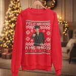 Gracias a la impresión DTF (Direct to Film) de alta definición, los colores y detalles de Valentín destacan casi tanto como su voz. Así que sí, este suéter será el tema de conversación durante muchas navidades.